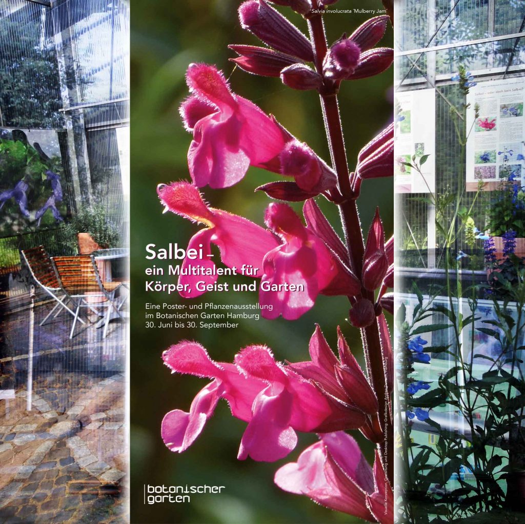 // Banner und Infotafeln zur Ausstellung im Botanischen Garten Hamburg: Salbei - ein Multitalent für Körper, Geist und Garten